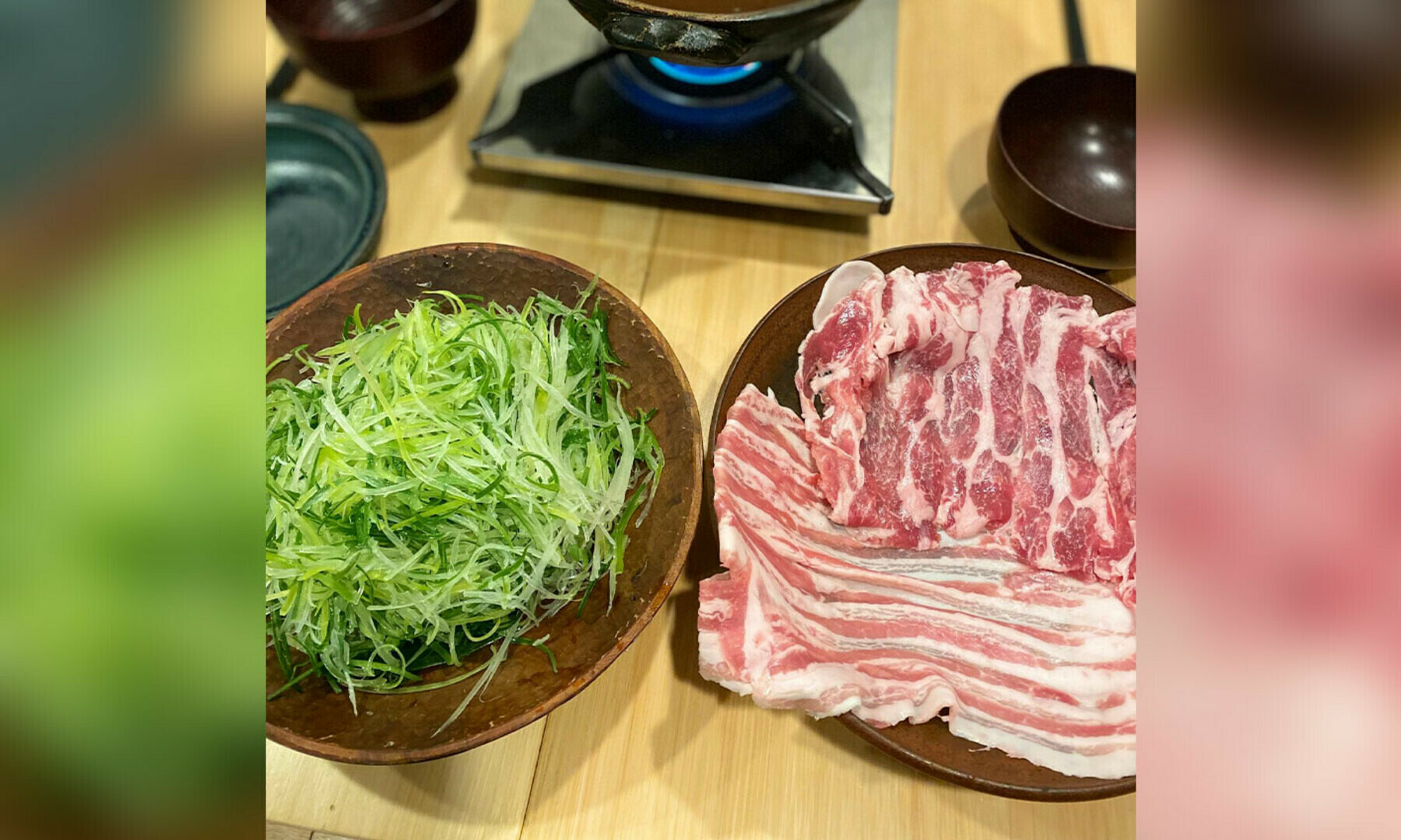 信州の伝統野菜の松本一本葱と飯田のブランド豚「千代幻豚」のシンプルな葱鍋。