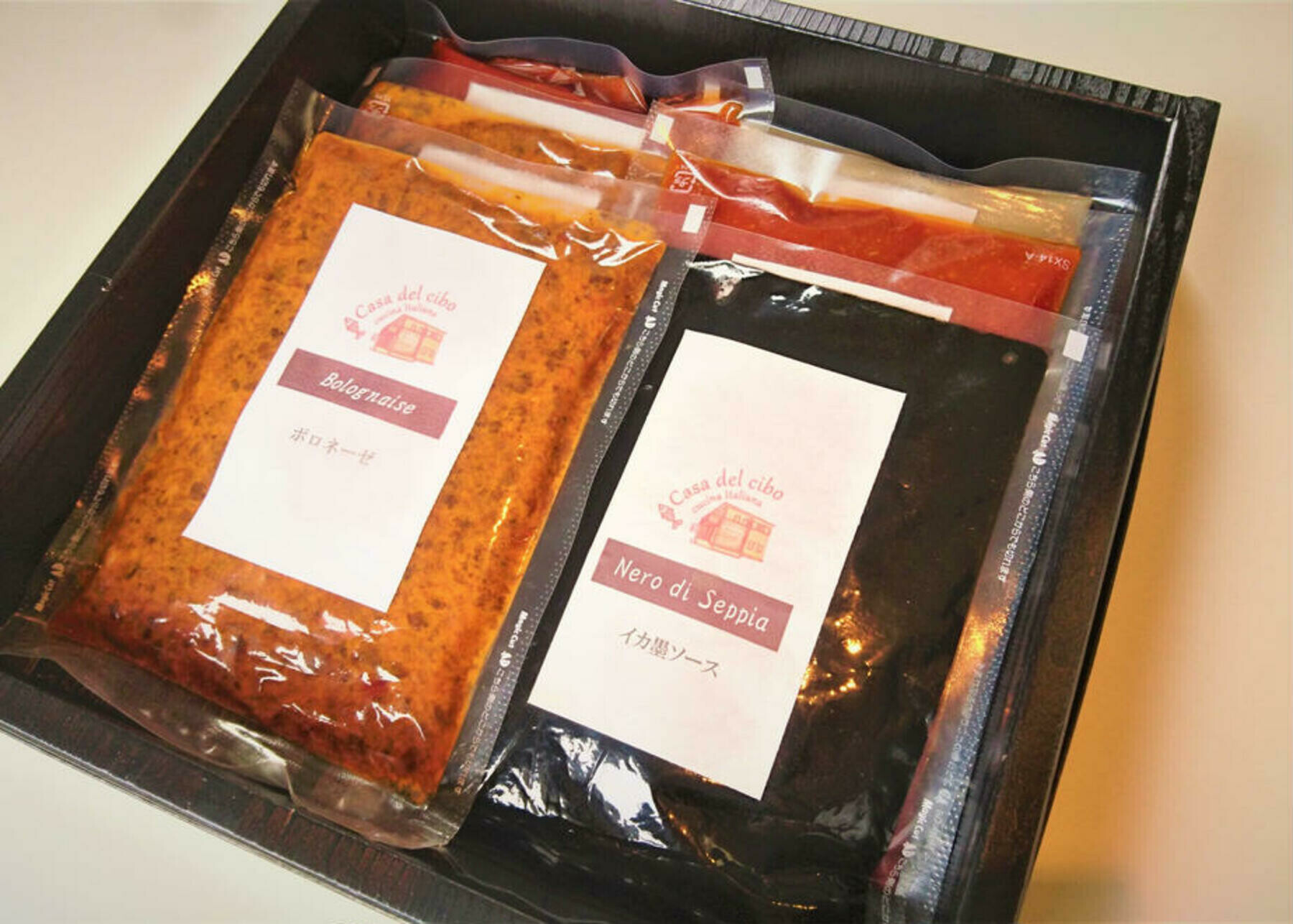 | 原材料 | ・パスタ(共通)…デュラム小麦のセモリナ ・長谷川自然牧場熟成豚とポルチーニセッキのラグー…熟成豚、玉ねぎ、乾燥ポルチーニ、白ワイン、にんにく、ホールトマト、 ・ボロネーゼ…黒毛和牛、国産豚、玉ねぎ、人参、セロリ、赤ワイン、乾燥ポルチーニ、ホールトマト ・イカ墨のパスタソース…ヤリイカ、玉ねぎ、にんにく、イカ墨、白ワイン、トマト、アンチョビ ・牡蠣のラグーソース…牡蠣、玉ねぎ、にんにく、白ワイン、ケイパー、アンチョビ、黒オリーブ ・タコのトマトソース…タコ、玉ねぎ、にんにく、鷹の爪、アンチョビ、黒オリーブ、オレガノ |