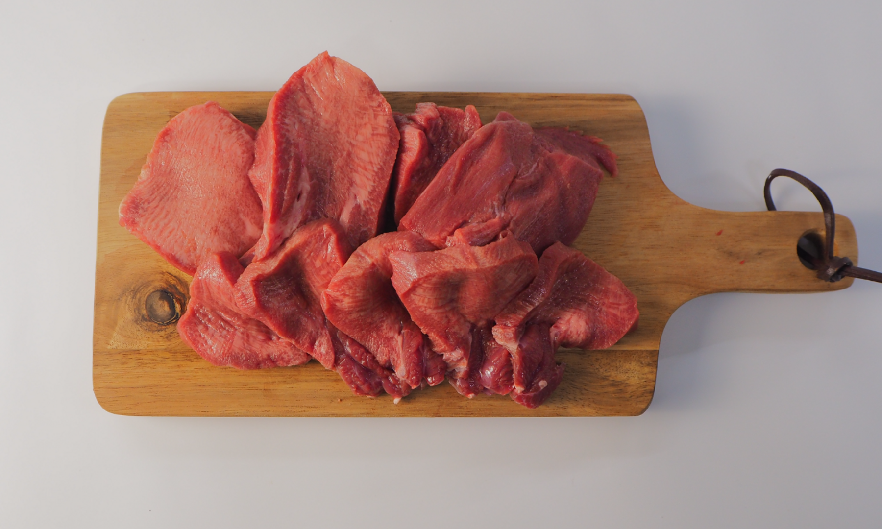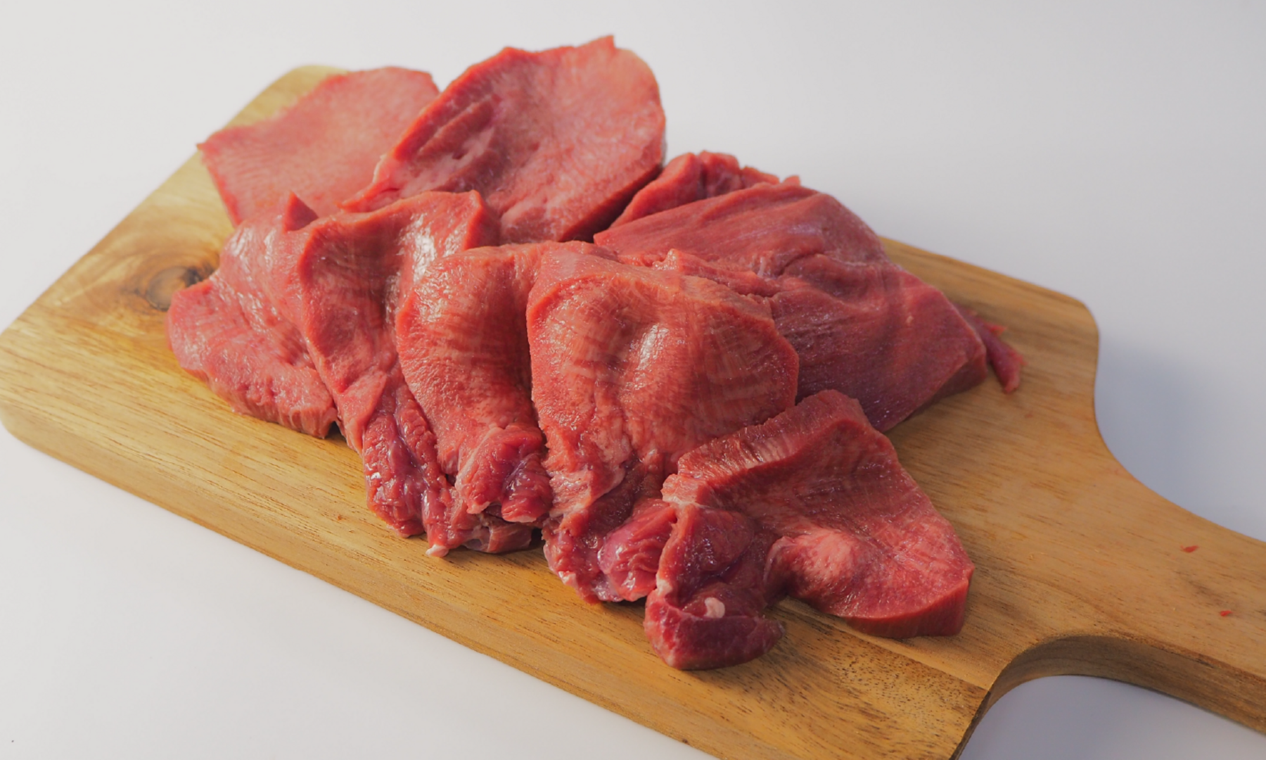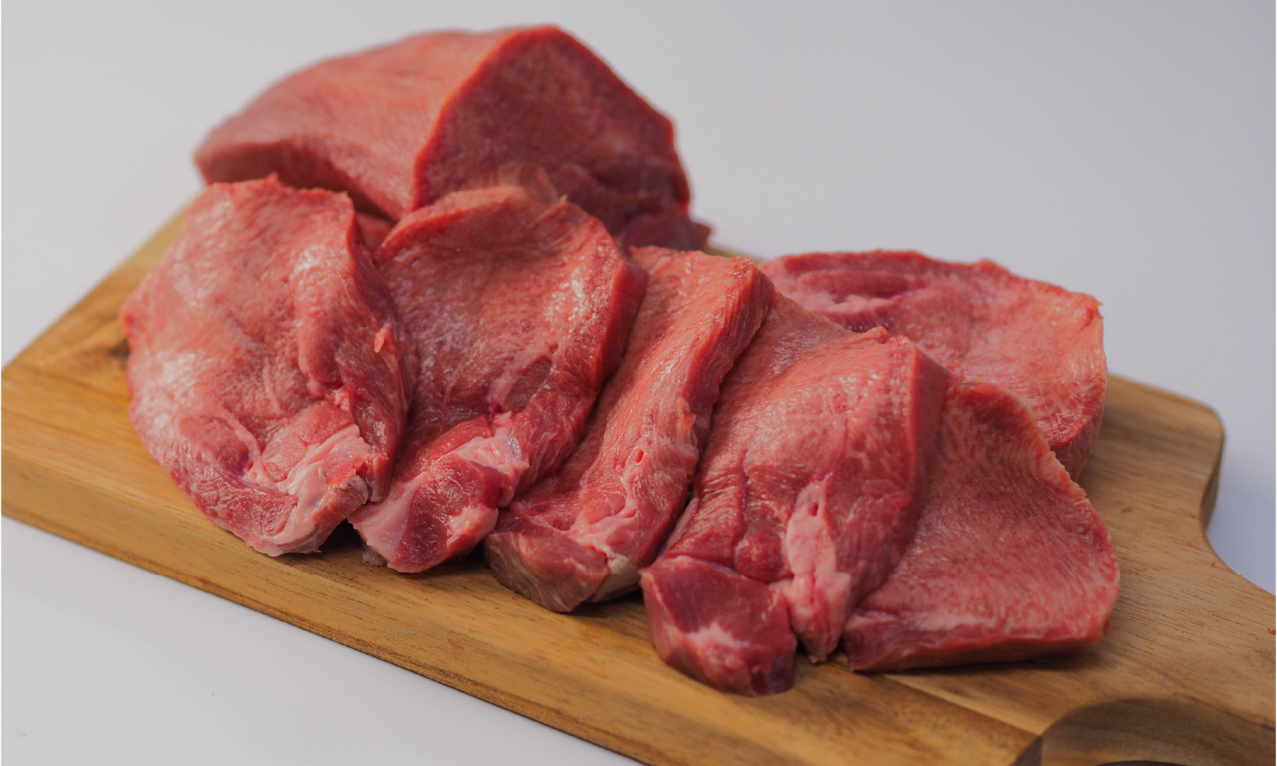 焼肉店で食べるタンは、隠し包丁が入り噛み切りやすいように仕上げますが、柔らかく噛み切れる熟成タンは、厚み10mm隠し包丁なしです。