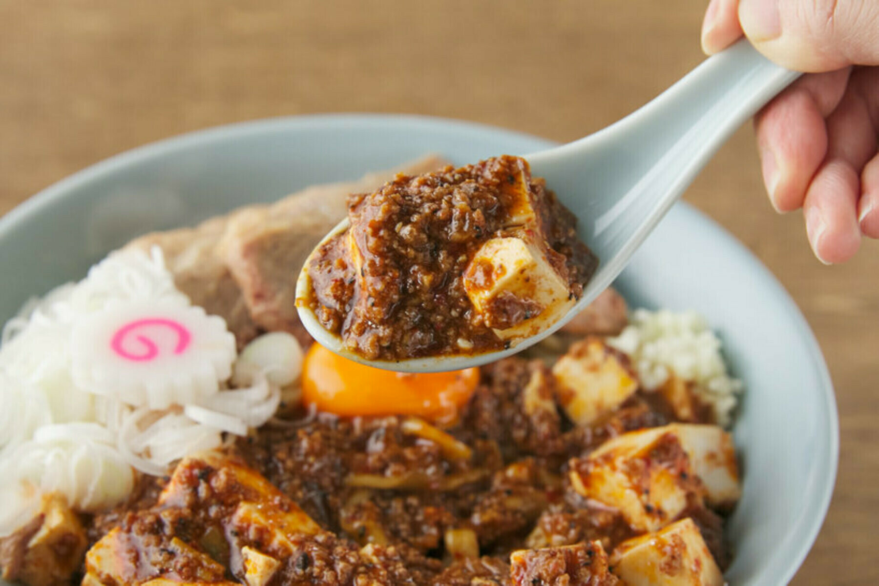 | 原材料 | ・麺:小麦粉、水、かん水 ・麻婆ダレ:豚ウデ肉、豚ひき肉、しょうゆ、香味油、砂糖、食用大豆油、豆板醤、甜麺醤、食塩、発酵調味料、でん粉、しょうが、にんにく、長ネギ、唐辛子、胡椒、ガーリックペースト、調味料、酸味料、料理酒 ・上記以外:豚背脂、玉ねぎ、にんじん、キャベツ、魚肉、卵白、加工でん粉、花山椒、山椒、粉唐辛子、ブラックペッパー |