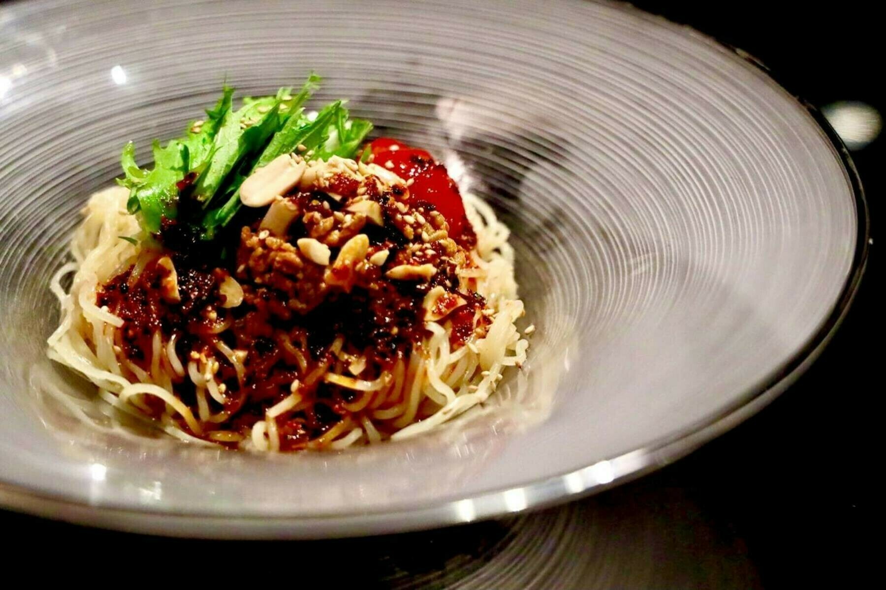 香り高い特製ゴマだれと、絶品肉味噌や食欲を刺激する辣油を茹でた麺に和え、爽やかな花椒と刺激的な唐辛子のナッツを掛けるだけでやみつきの旨さ。