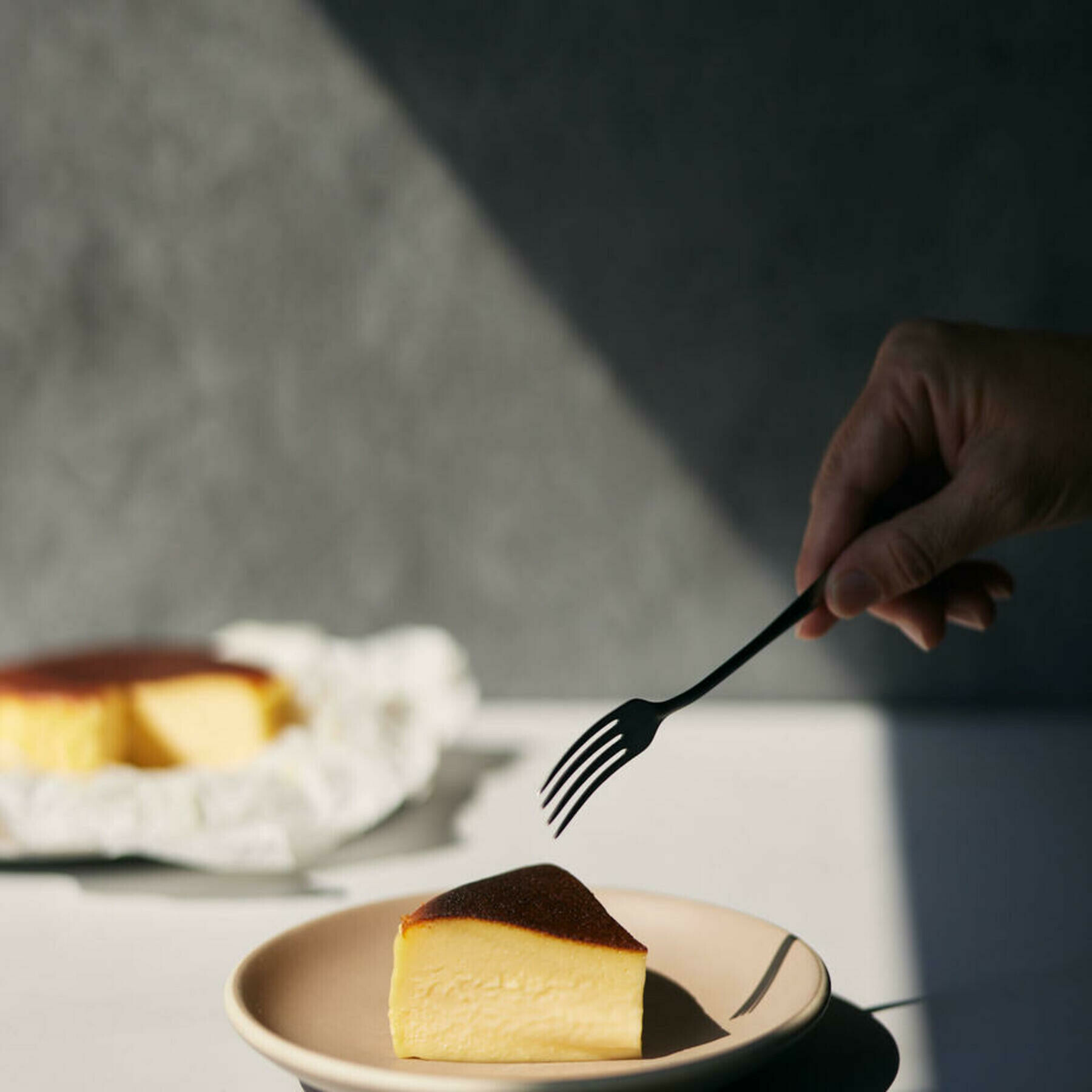 外側のベイクド部分はしっとり、中はとろっとレア食感に仕上げました。