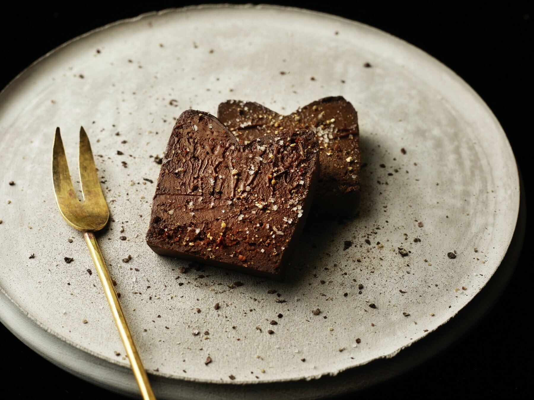 チョコレートの本来の香りを損なわない為にアルカリ処理を省いたショコラを贅沢に使ってテリーヌを作りました。