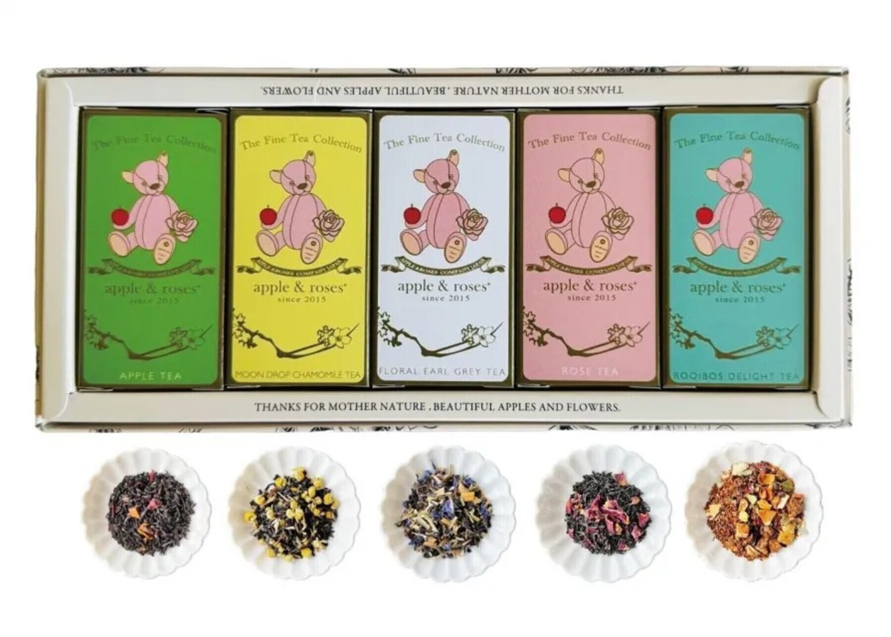 可愛らしい小箱に、選りすぐりのフレーバーティーを詰め、5種類のフレーバーが楽しめるアソートにしました。