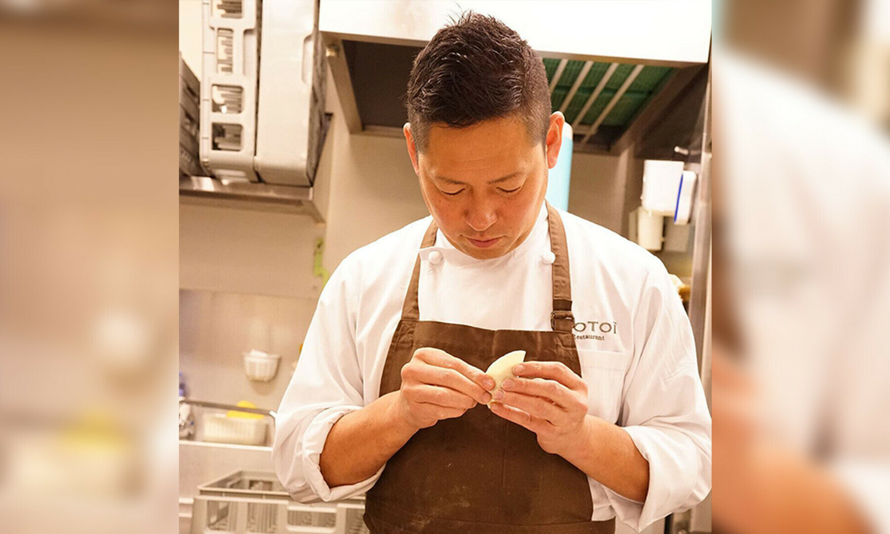「主客一体のおもてなし」 お客様をお迎えする際、私たちは常にこの言葉を念頭に置きます。 「主客一体」とは、茶道におけるおもてなしの精神を端的に表した言葉で、「主(ホスト)」と「客(お客様)」が協力し、一体となって時間と空間を創り上げる姿勢を言います。 私たちのレストランは、お客様とスタッフの気持ちが一体となり生み出す「和」を大切にしています。それがMOTOIの考える「主客一体」であり、おもてなしです。