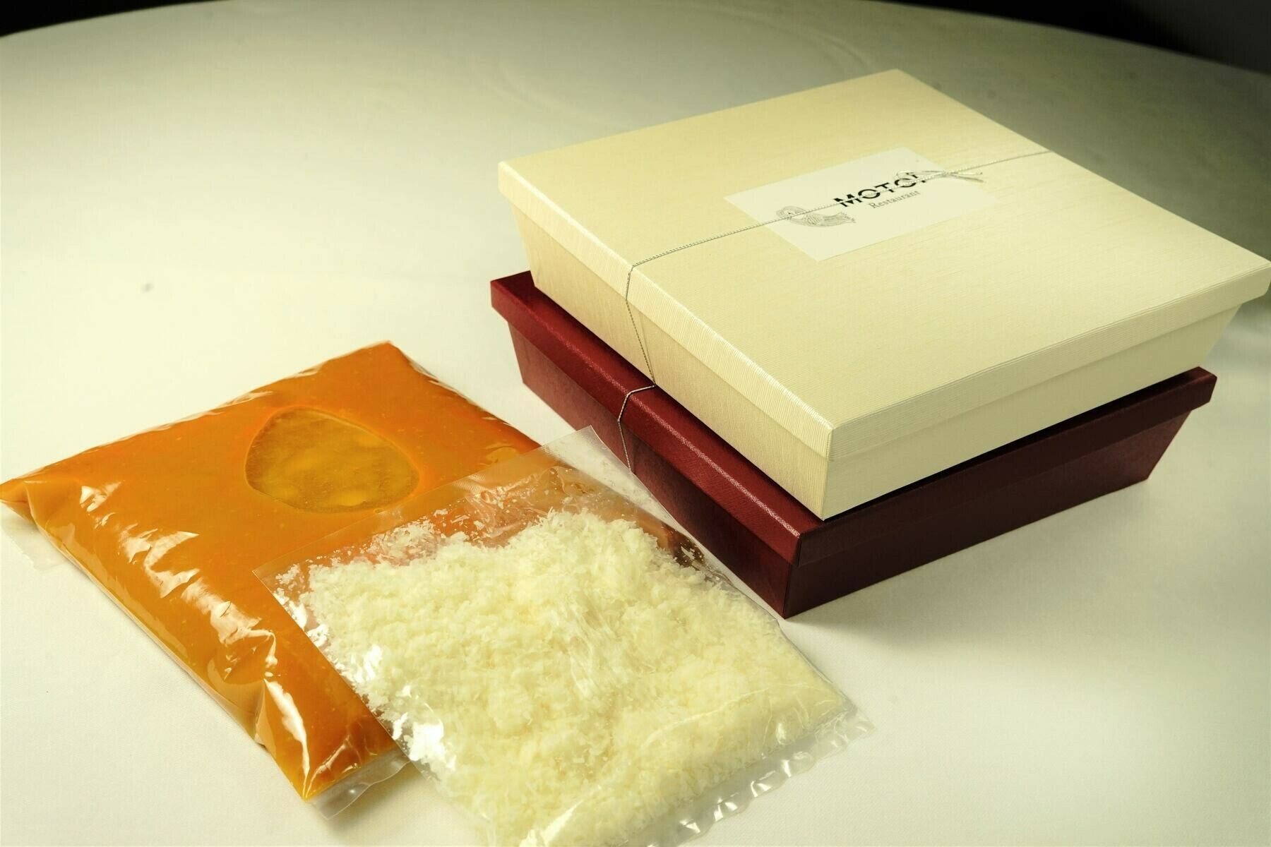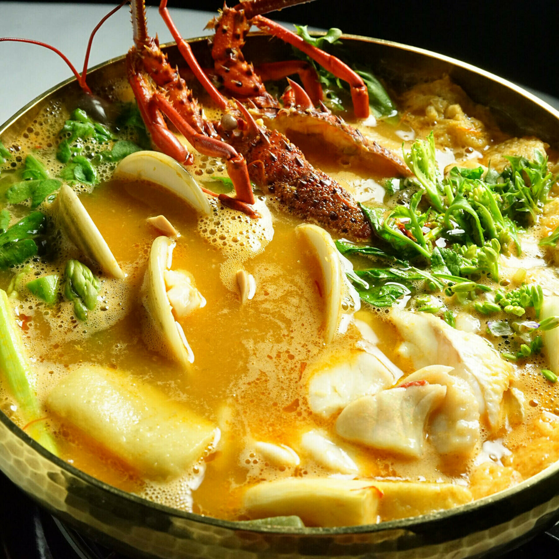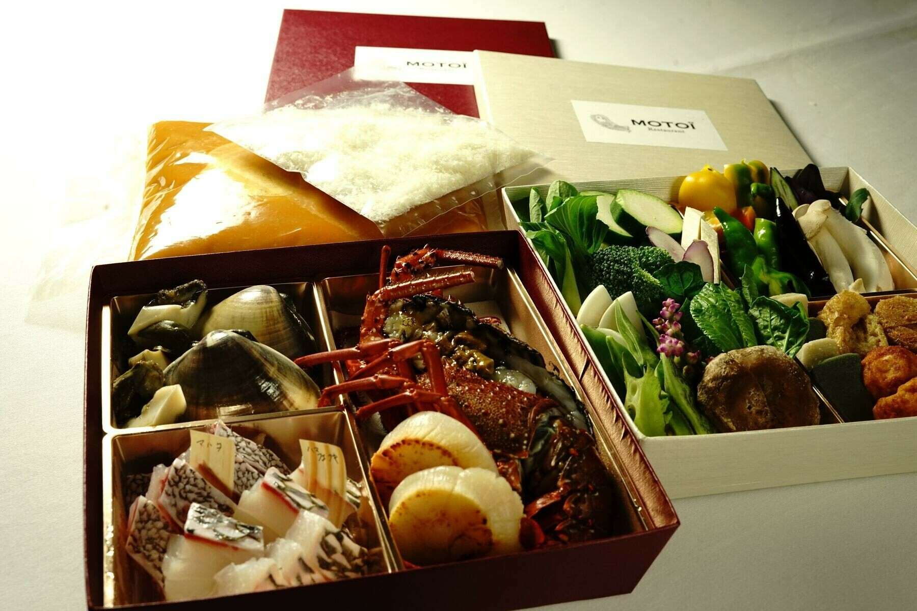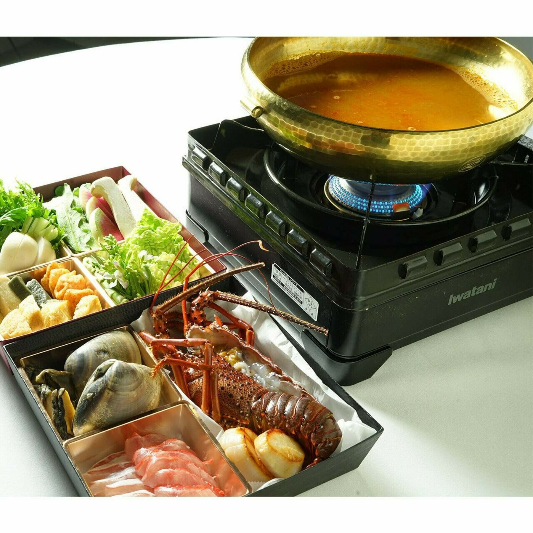 | 原材料 | 伊勢海老、国産ハマグリ、天然白身魚二種、ホタテ貝柱、蒸し鮑、オマール海老のムース、粟麩、蓬麩、きりこ巻湯葉、京都大原のお野菜15種、茸2種、ペコリーノチーズ、ブイヤベーススープ |