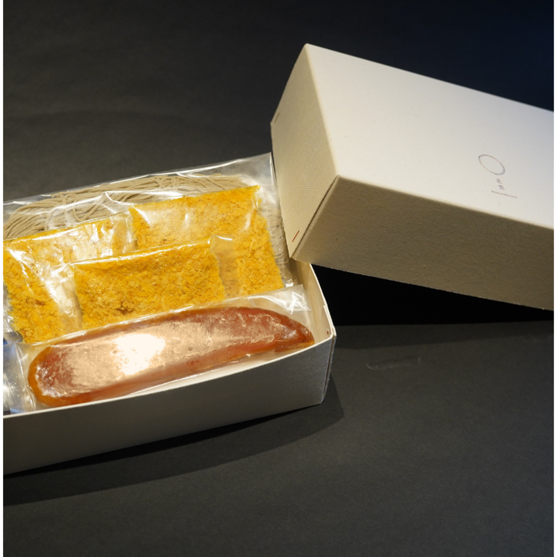 | 内容量 | そば(3束) からすみ(約100g) おろしからすみ(約100g) そばつゆ |