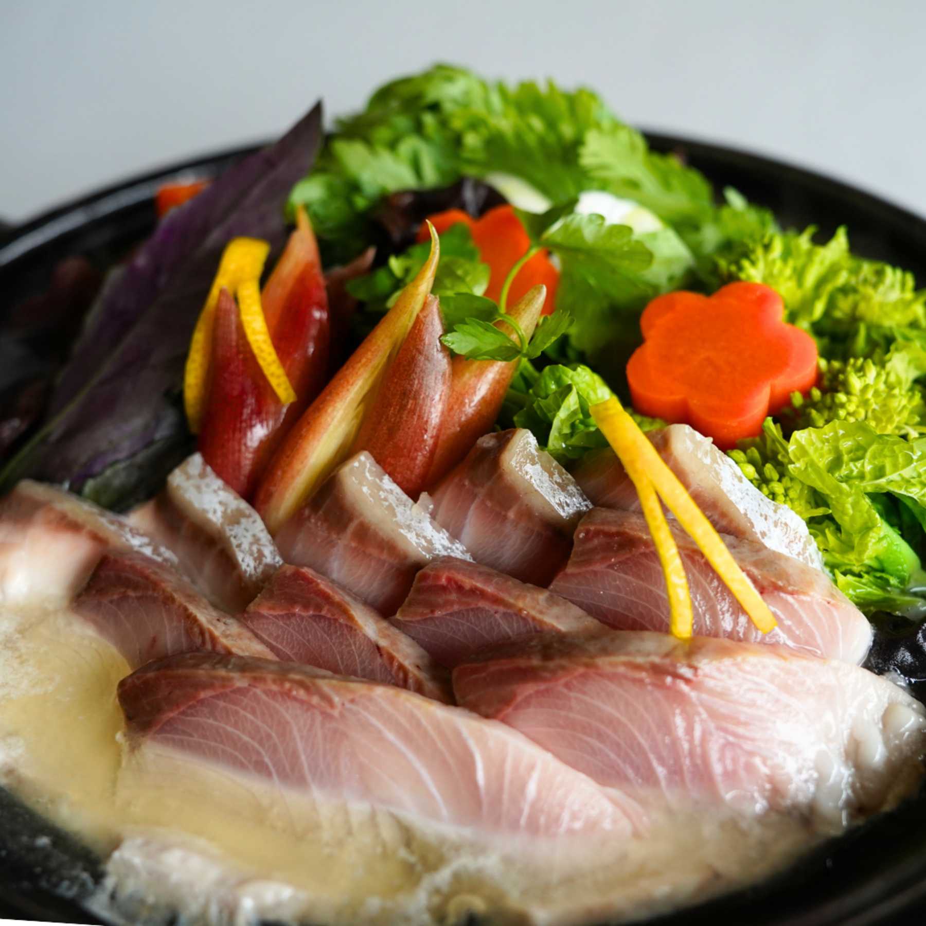 寒ぶりは石川県能登地域で育まれた、身が引き締まり脂がのった味わい深い魚。この寒ぶりと新鮮なかぶらを、特製の優しいだしでしゃぶしゃぶスタイルでお楽しみください。