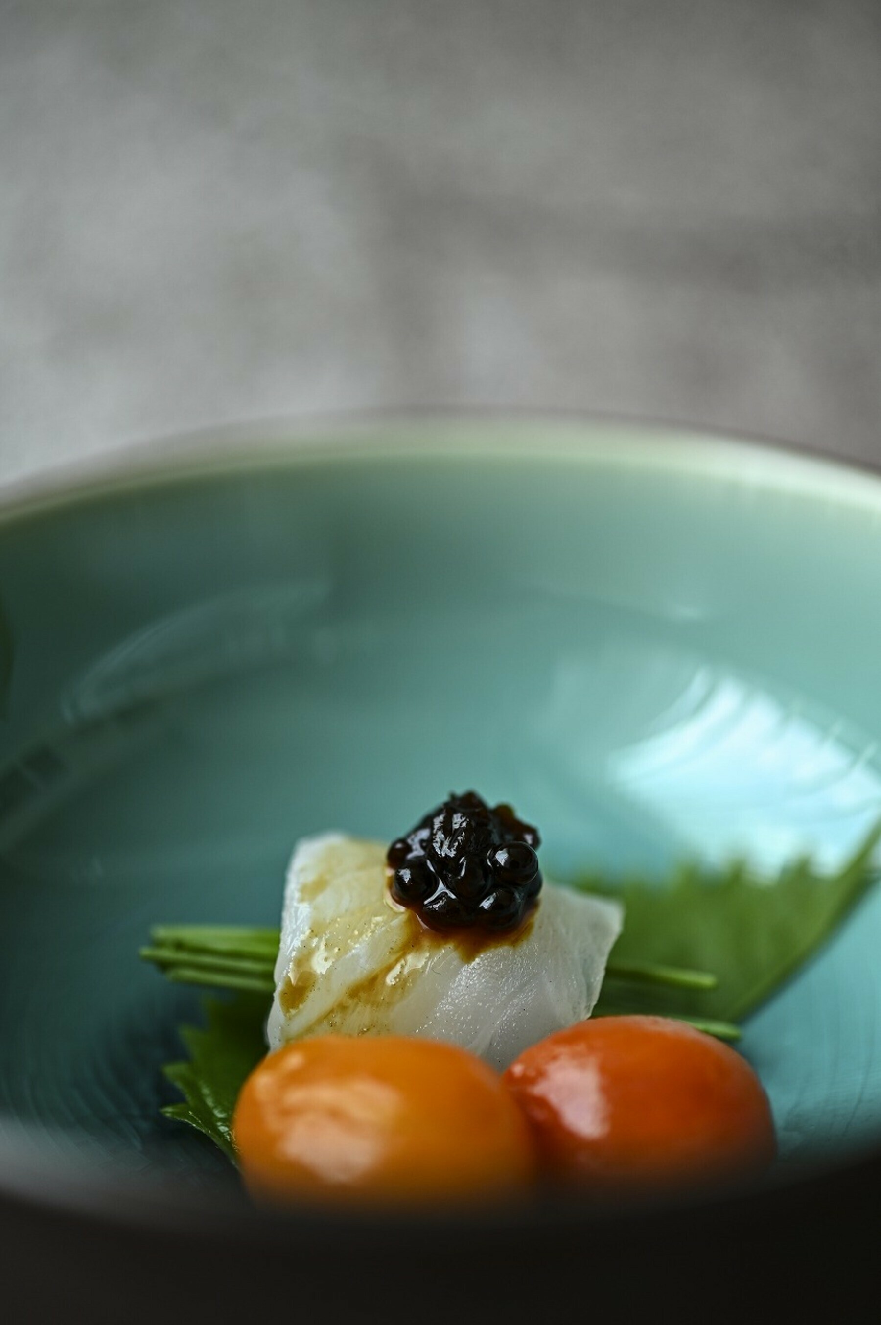 魚介類との相性は抜群で、しっかり残ったキャビアの粒が見た目にも贅沢にお料理を引き立てます。