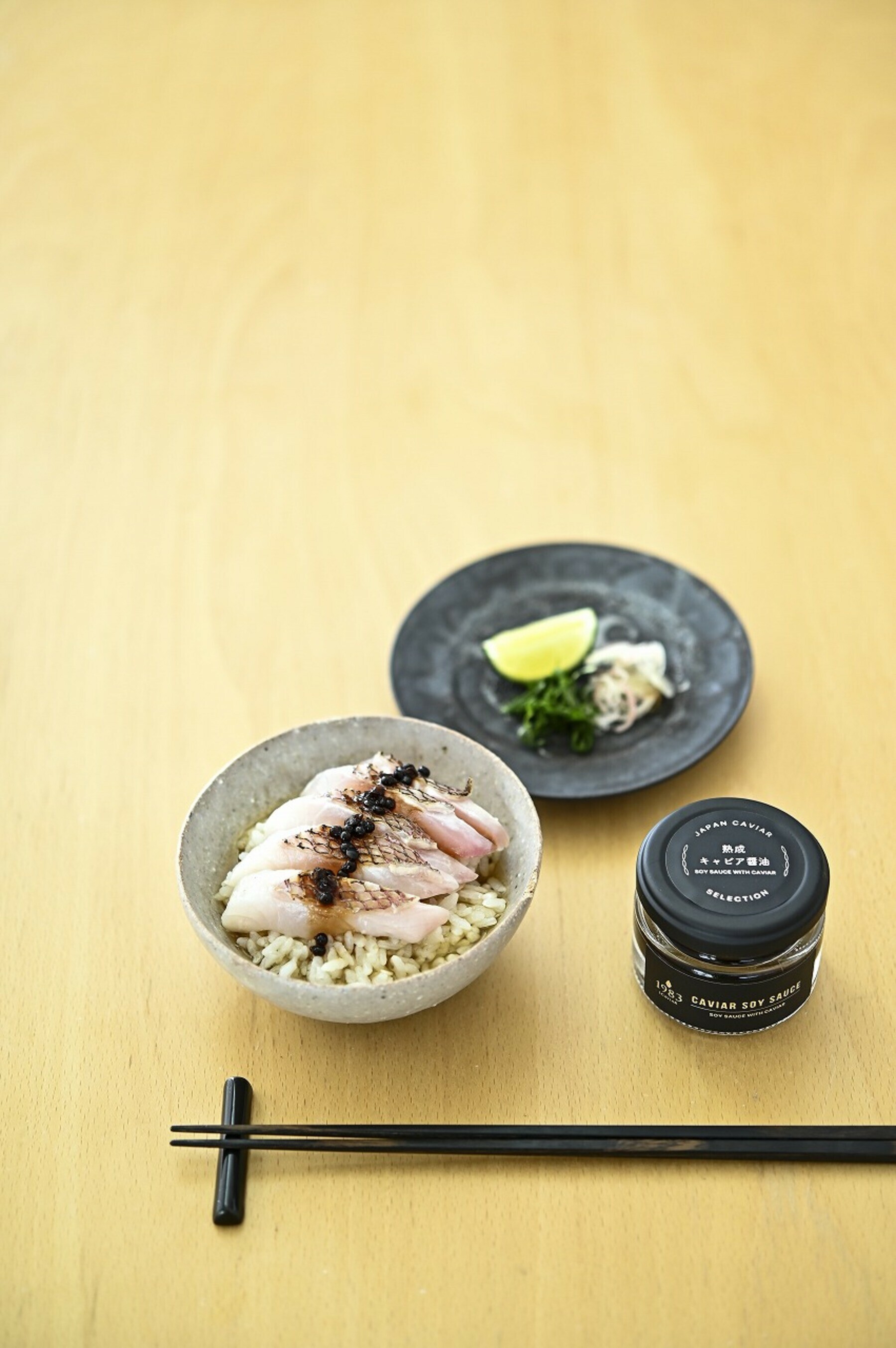 3ヶ月以上の長期にわたり熟成をかけて芳醇な旨味が凝縮したキャビア醤油に仕上げました。