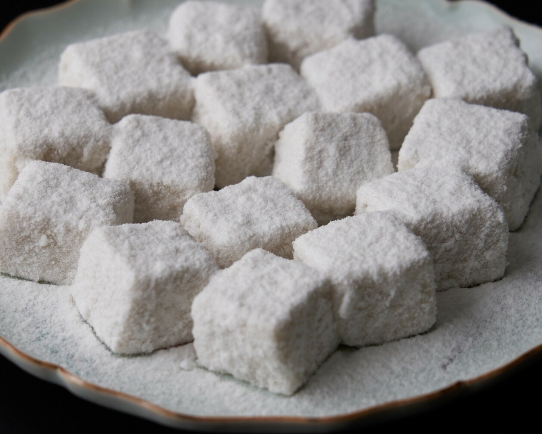 わらび粉とココナッツミルクを練りあげたお菓子。