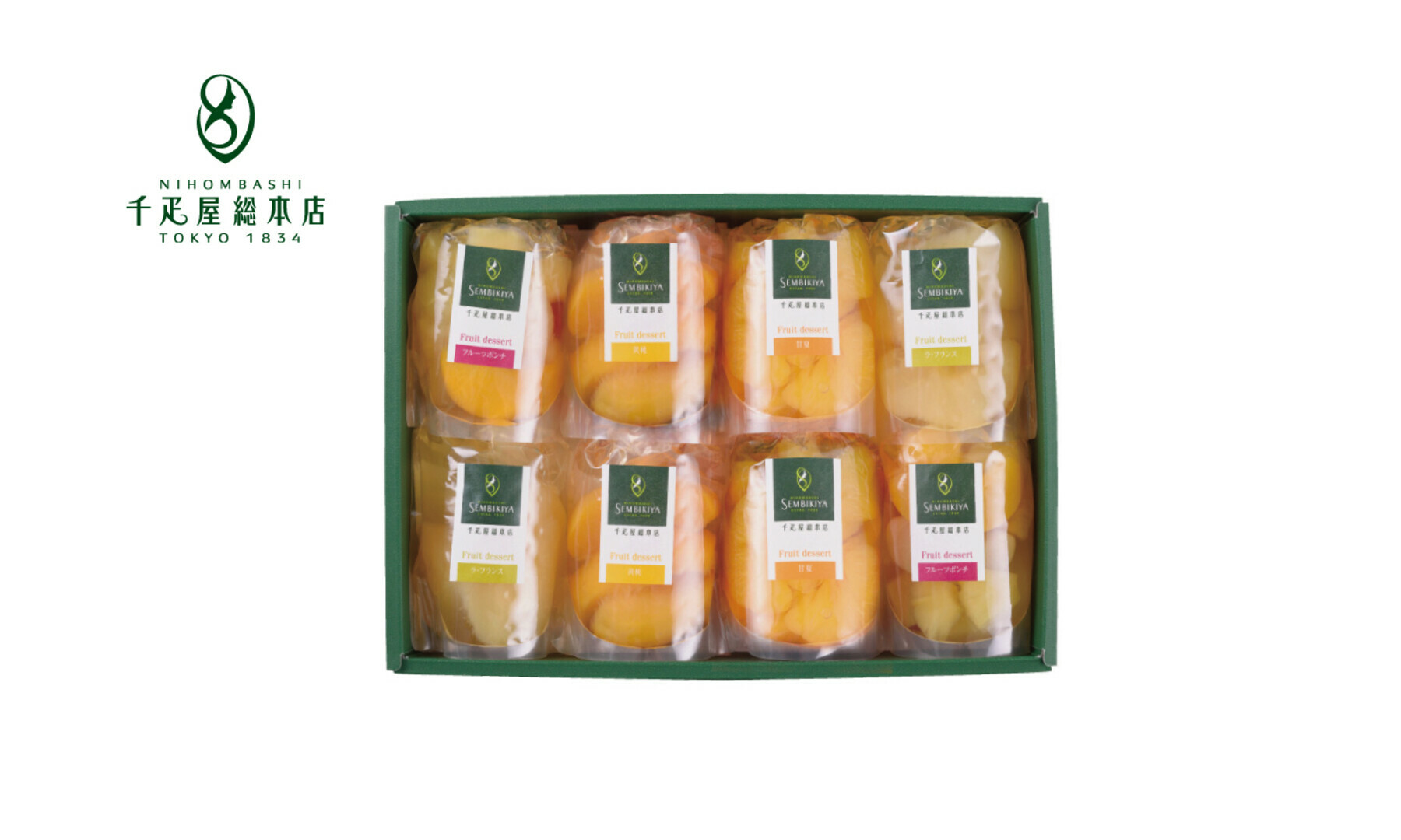 洋なし、甘夏、黄桃、フルーツカクテルのいずれか8個を詰合せてお届け致します。