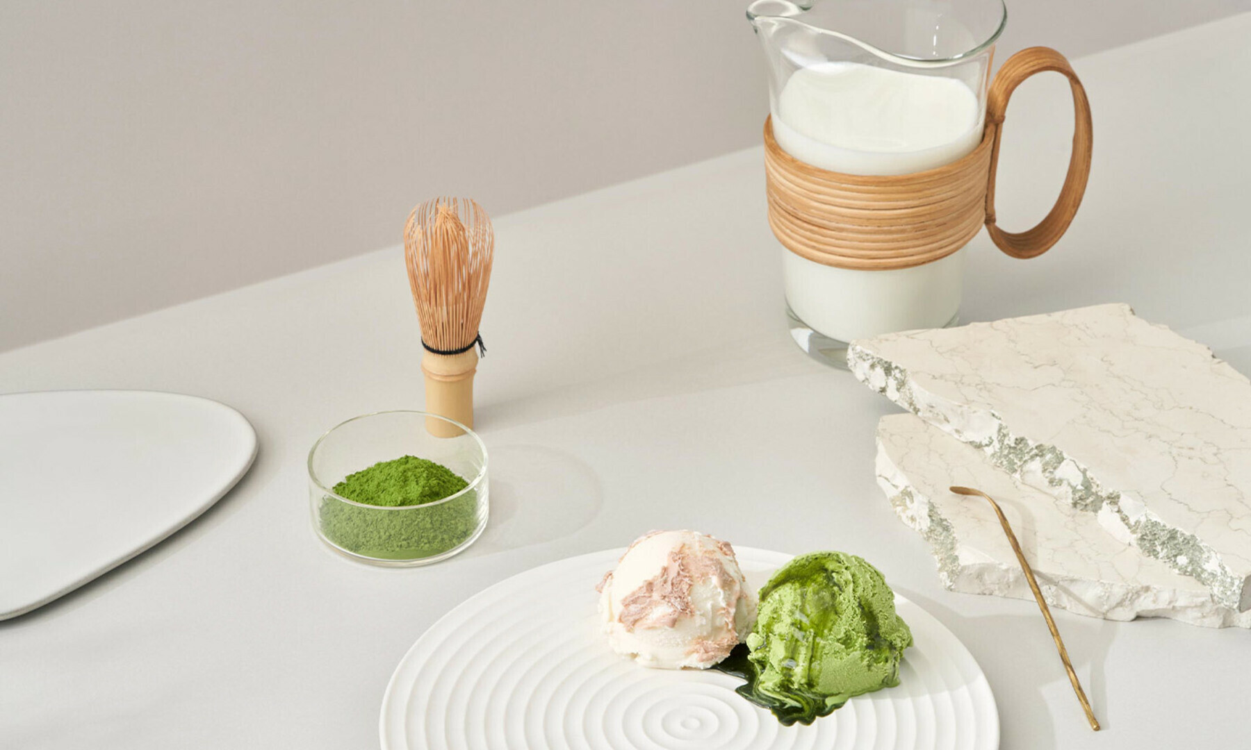濃厚なミルクと抹茶の苦味が引き立てあう、大人のデザートです。
