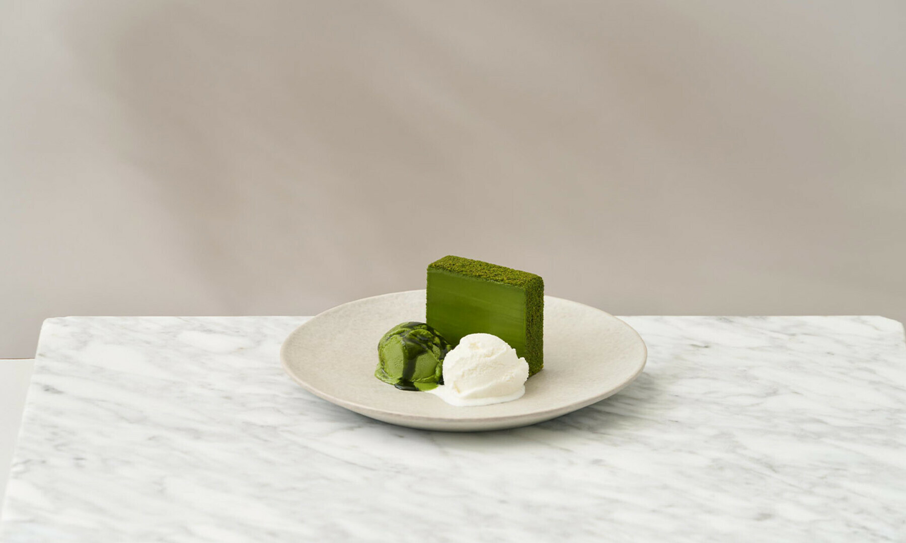 RICH MATCHAには上質な八女茶を使い、抹茶の旨味をピュアに感じるソースを乗せました。