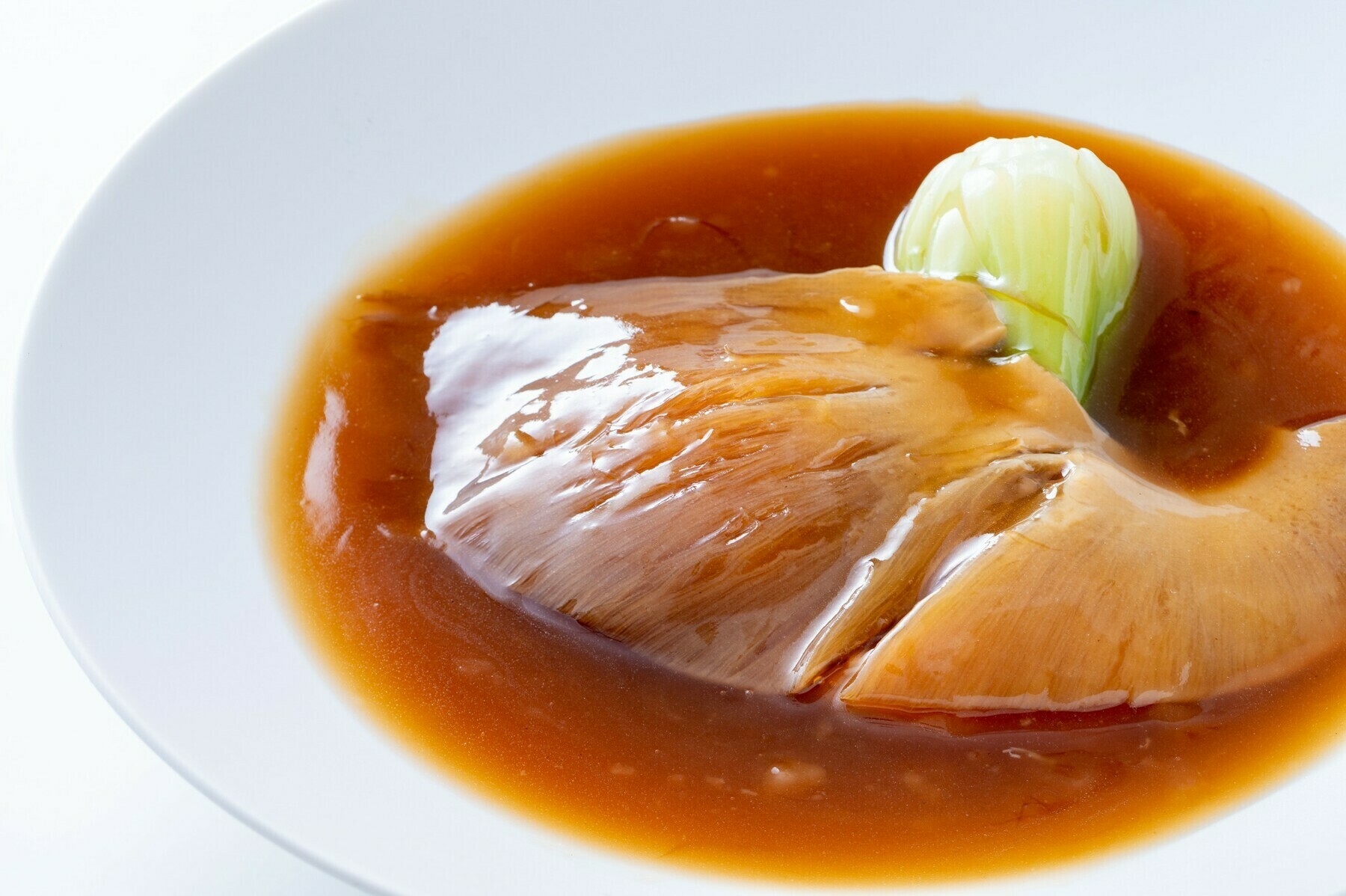 鶏ガラスープと濃厚白湯スープを使い、オイスターソースの甘味と旨味を加えて柔らかく煮込み、仕上げに鶏油を加えて本格仕上げになりました。