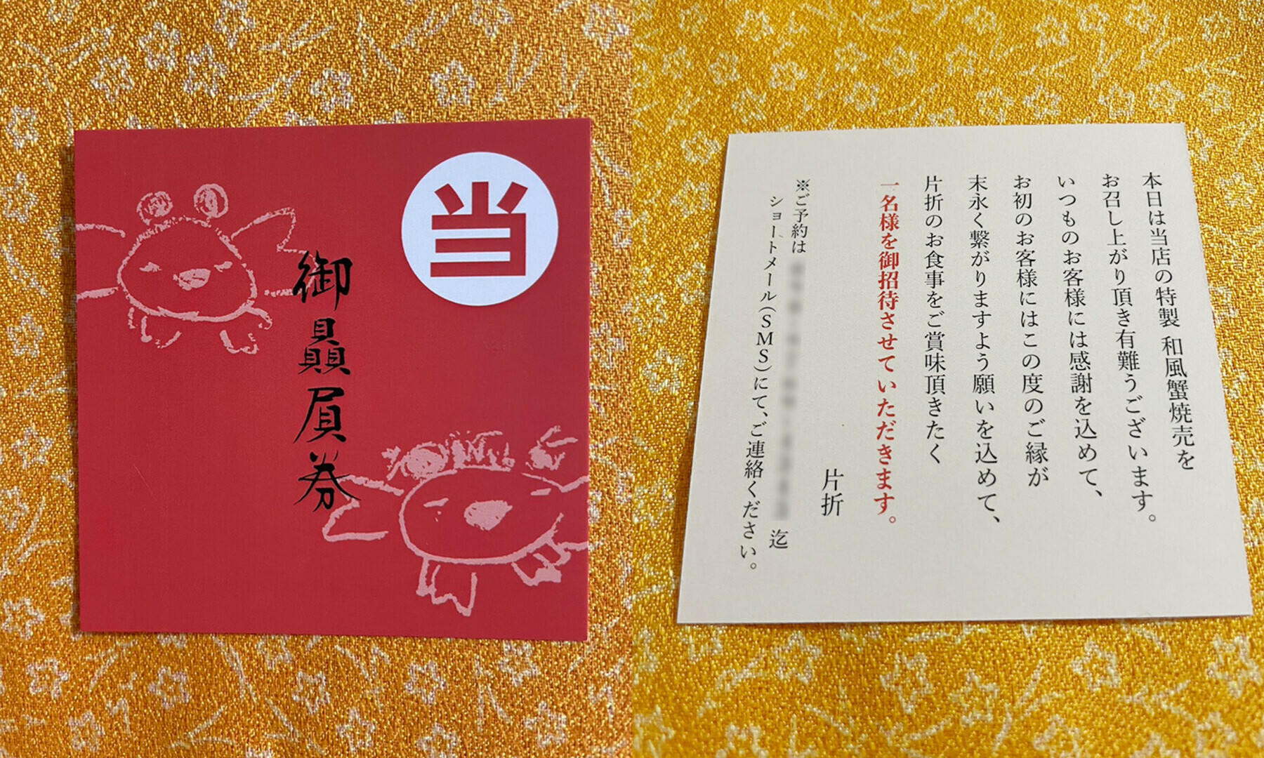 ご当選者さまには、片折のお食事をご賞味頂きたく、1名様を御招待させて頂きます。