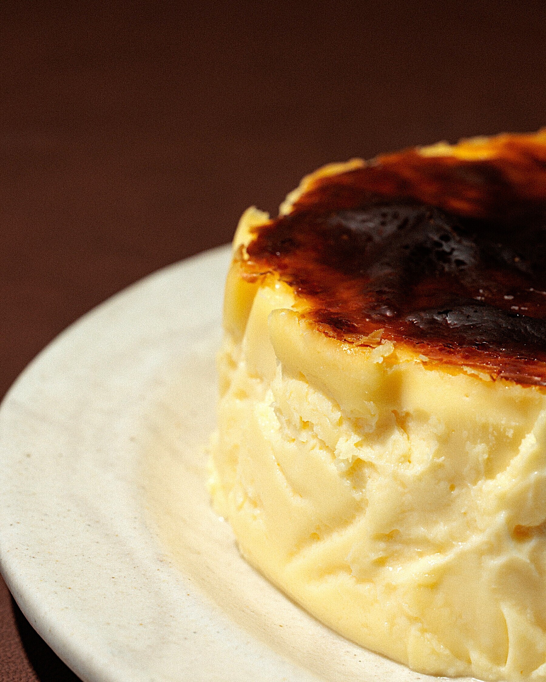 カラメルのようなほろ苦さと、チーズの濃厚な甘さが、絶妙にとろけあう、「焦げ」を楽しむバスクチーズケーキ。