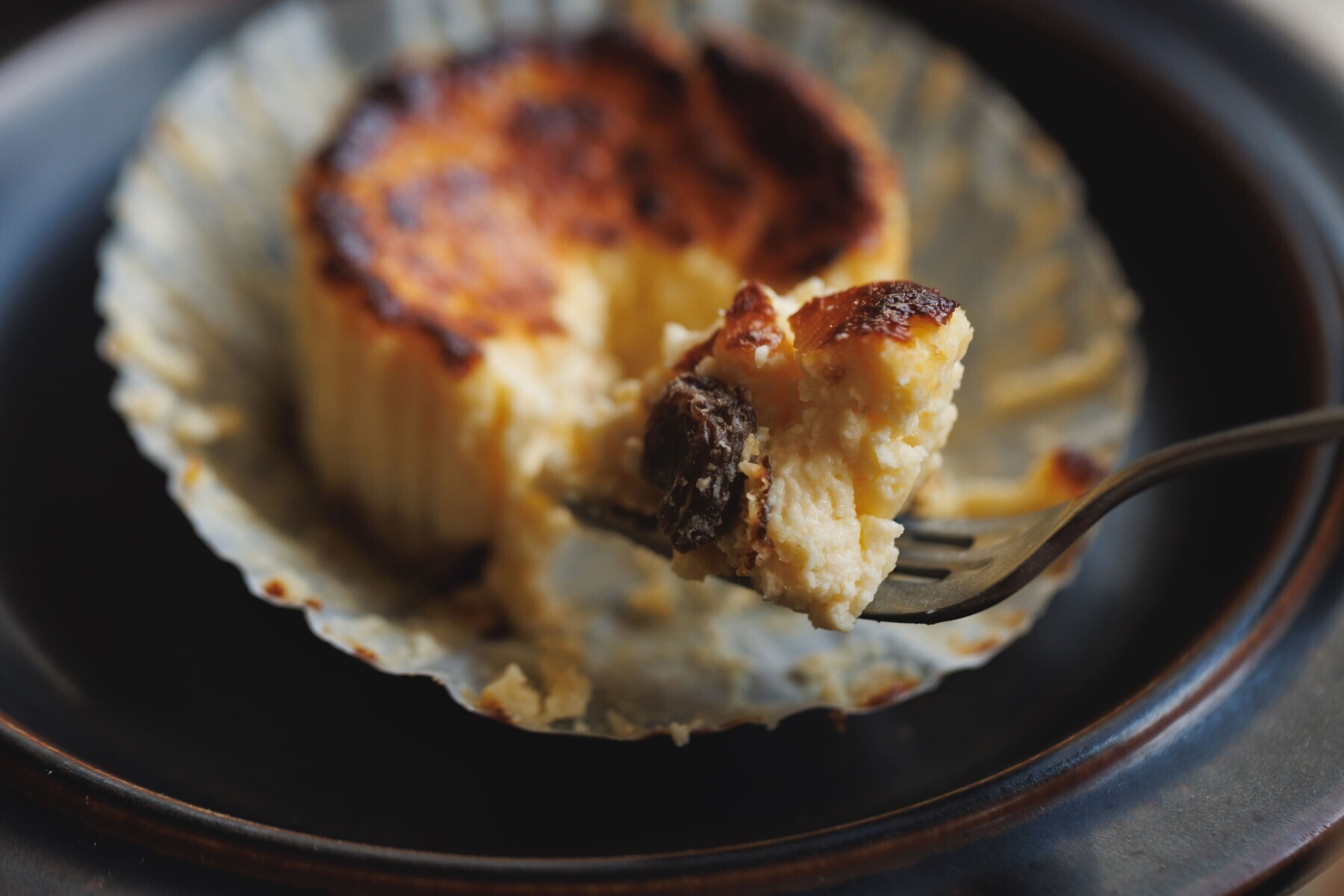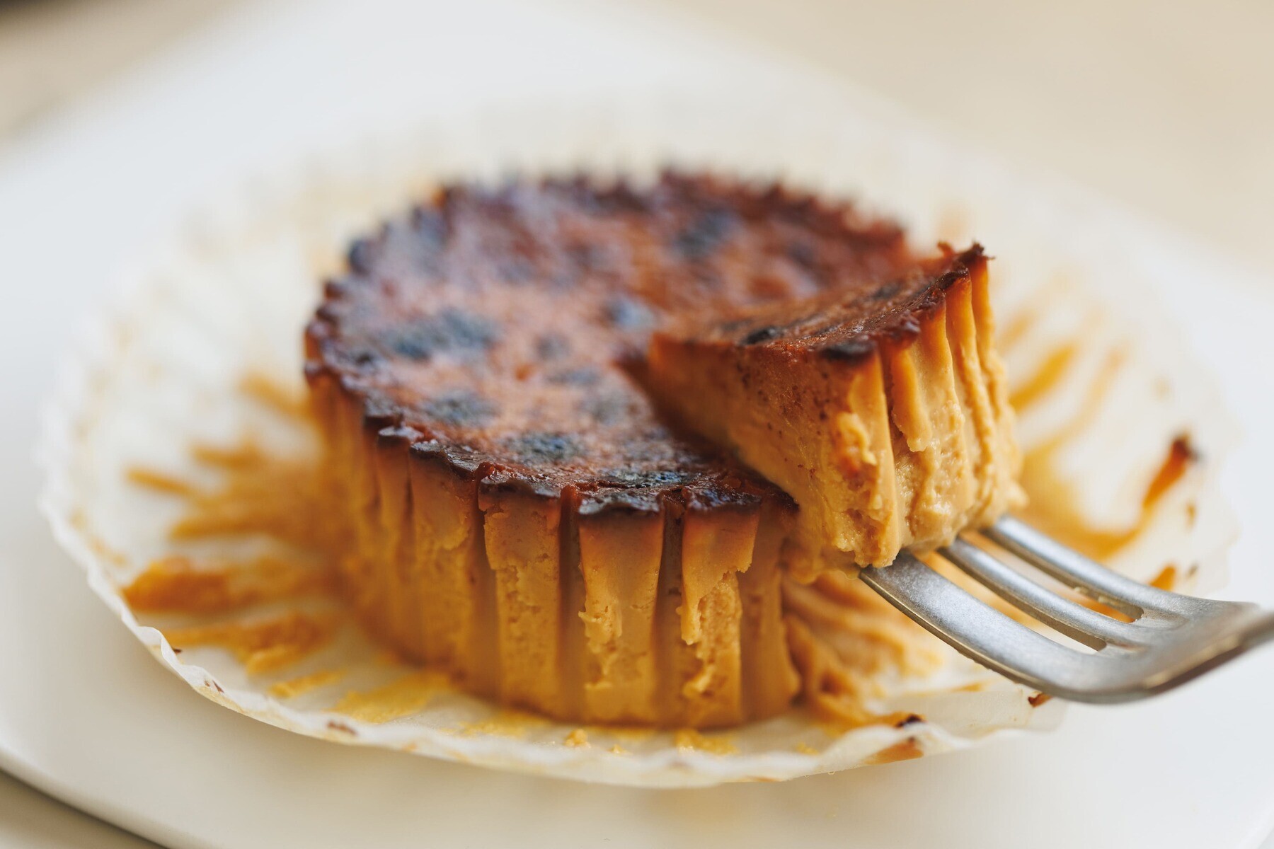 職人の手で一つひとつ丁寧に焼き上げられた小さなバスクチーズケーキは、しっとりと濃密な口どけと奥行きのある味わいが魅力。