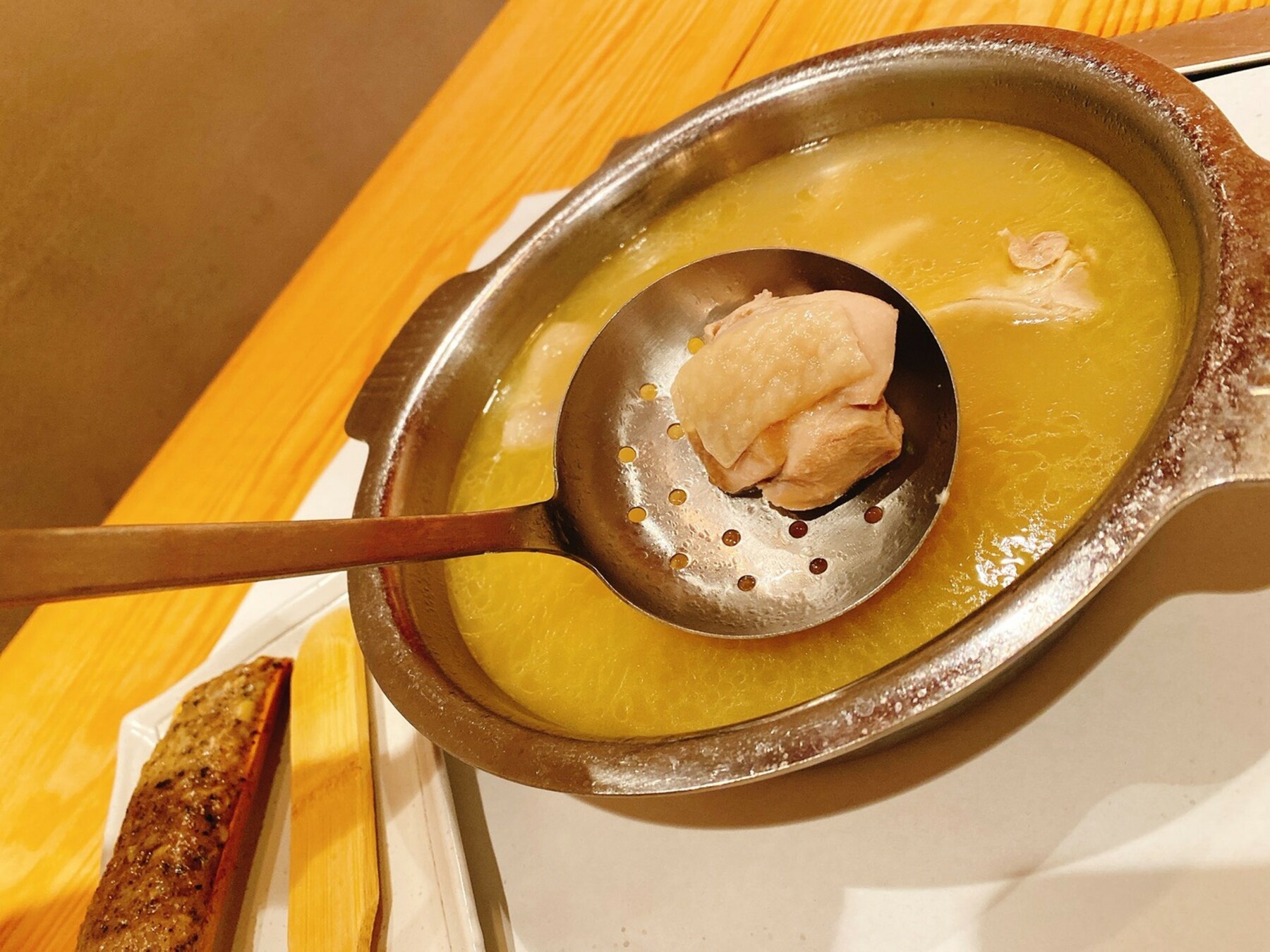 スープを小皿に取り分けてお塩をひとつまみ入れて、スープをお楽しみください。