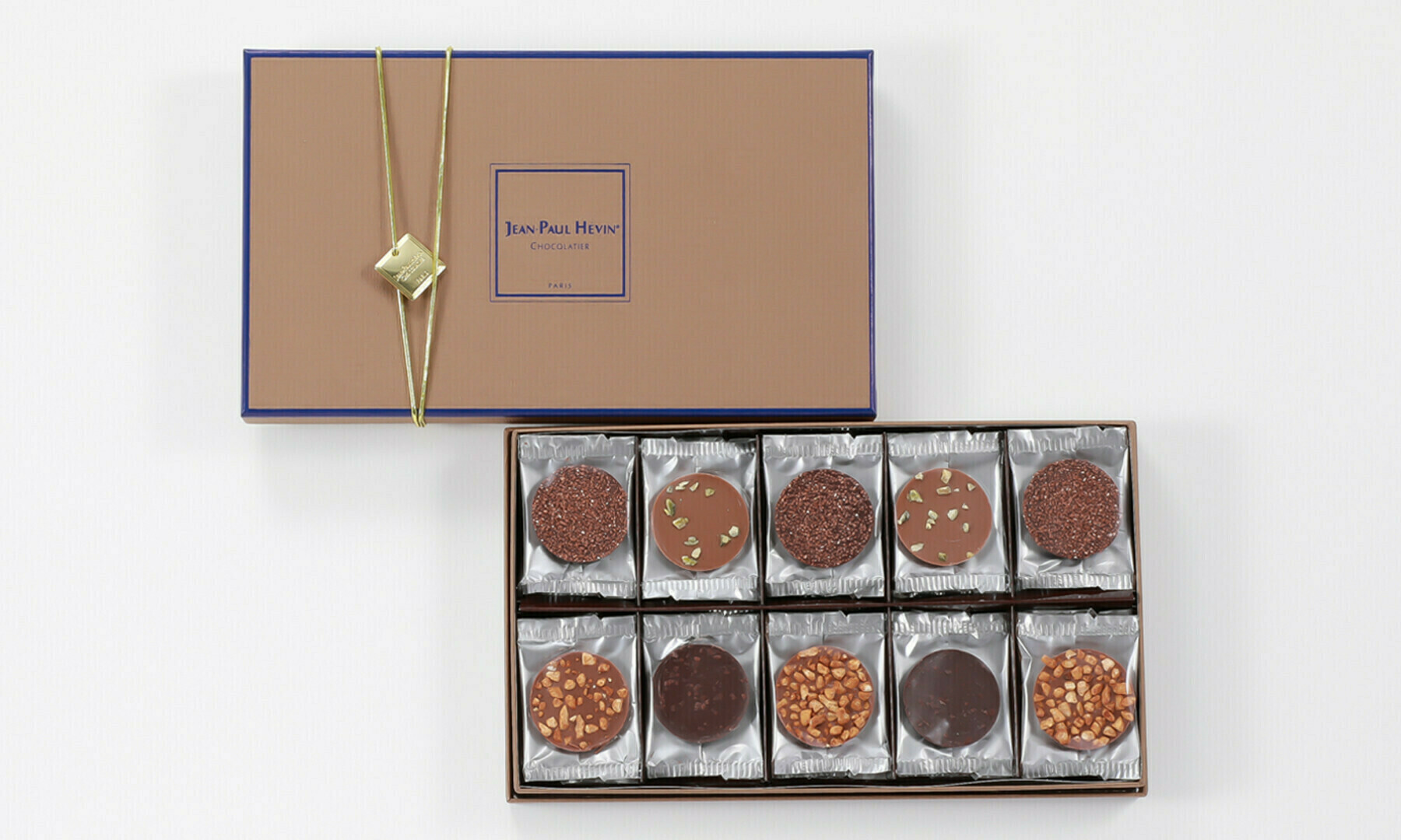 厳選されたカカオの新鮮な香りと味わいが長く愉しめる個包装タイプのショコラ30枚詰合せ。ピスタチオやアーモンドをトッピング。