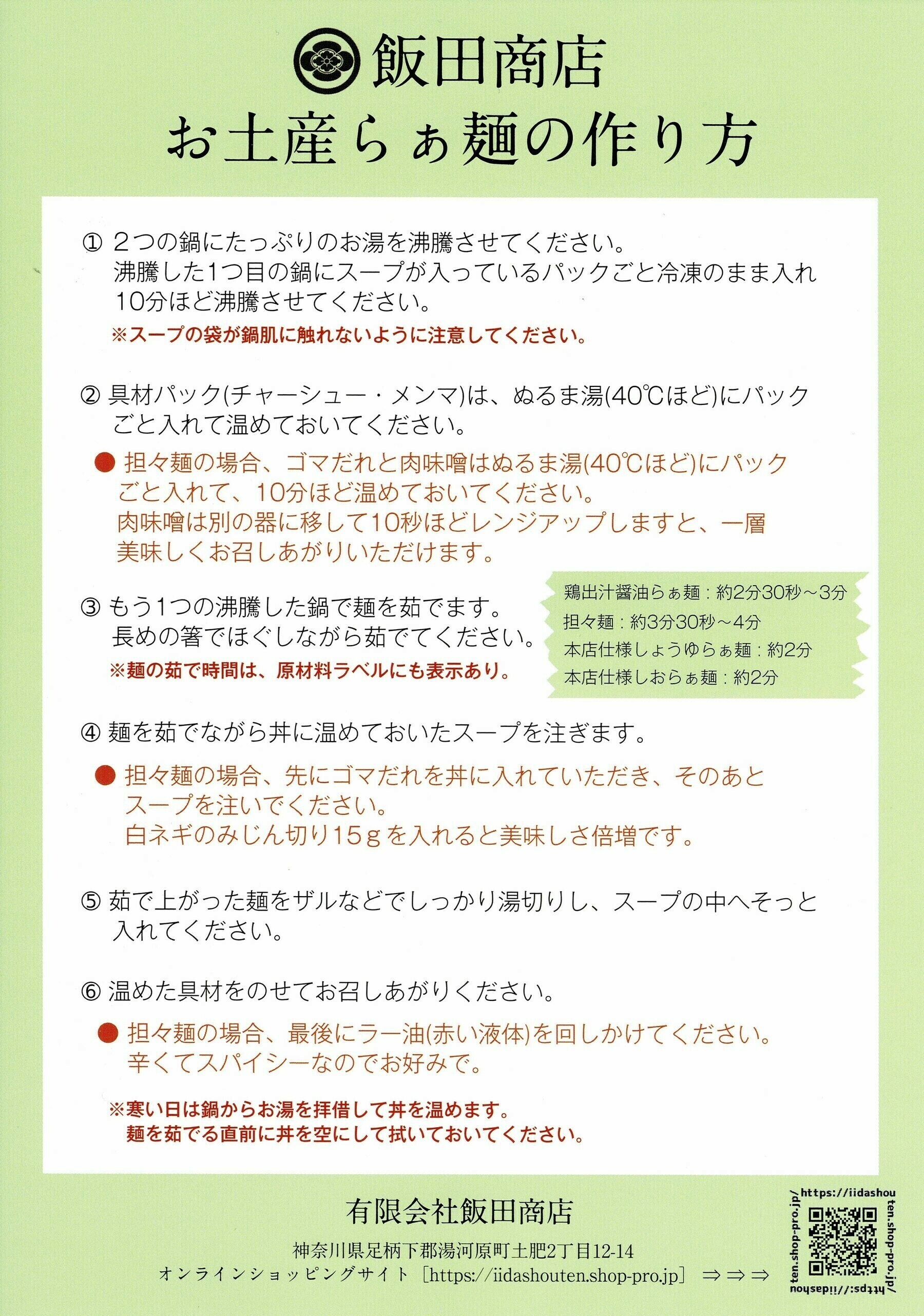 冷凍麺と冷凍スープのセット。ご家庭で「湯河原飯田商店」の味わいをお楽しみください。