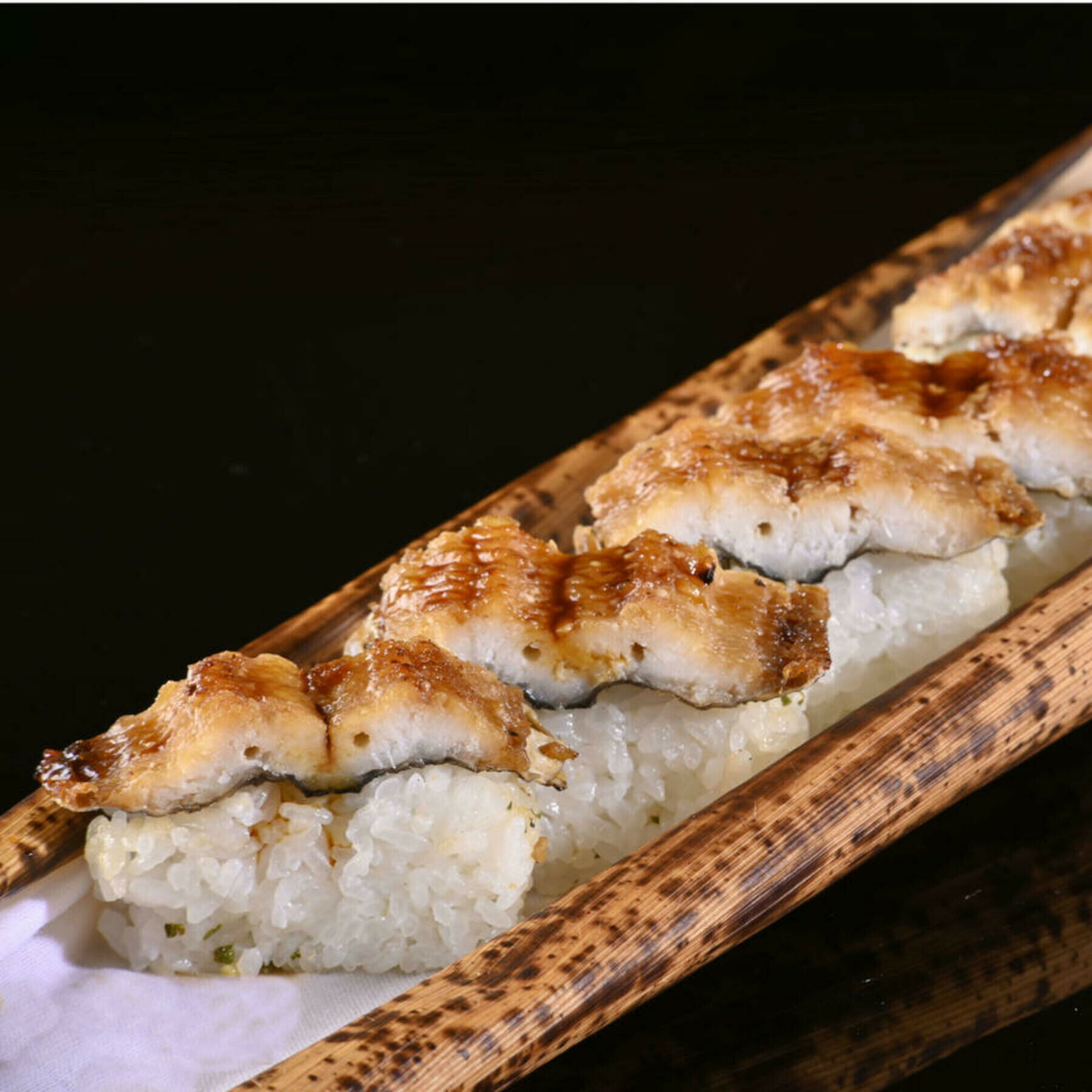 そんな瀬戸内の鱧を丁寧に骨切りをし、鱧の骨でお出汁をとったたれをつけて焼いた棒寿司です。