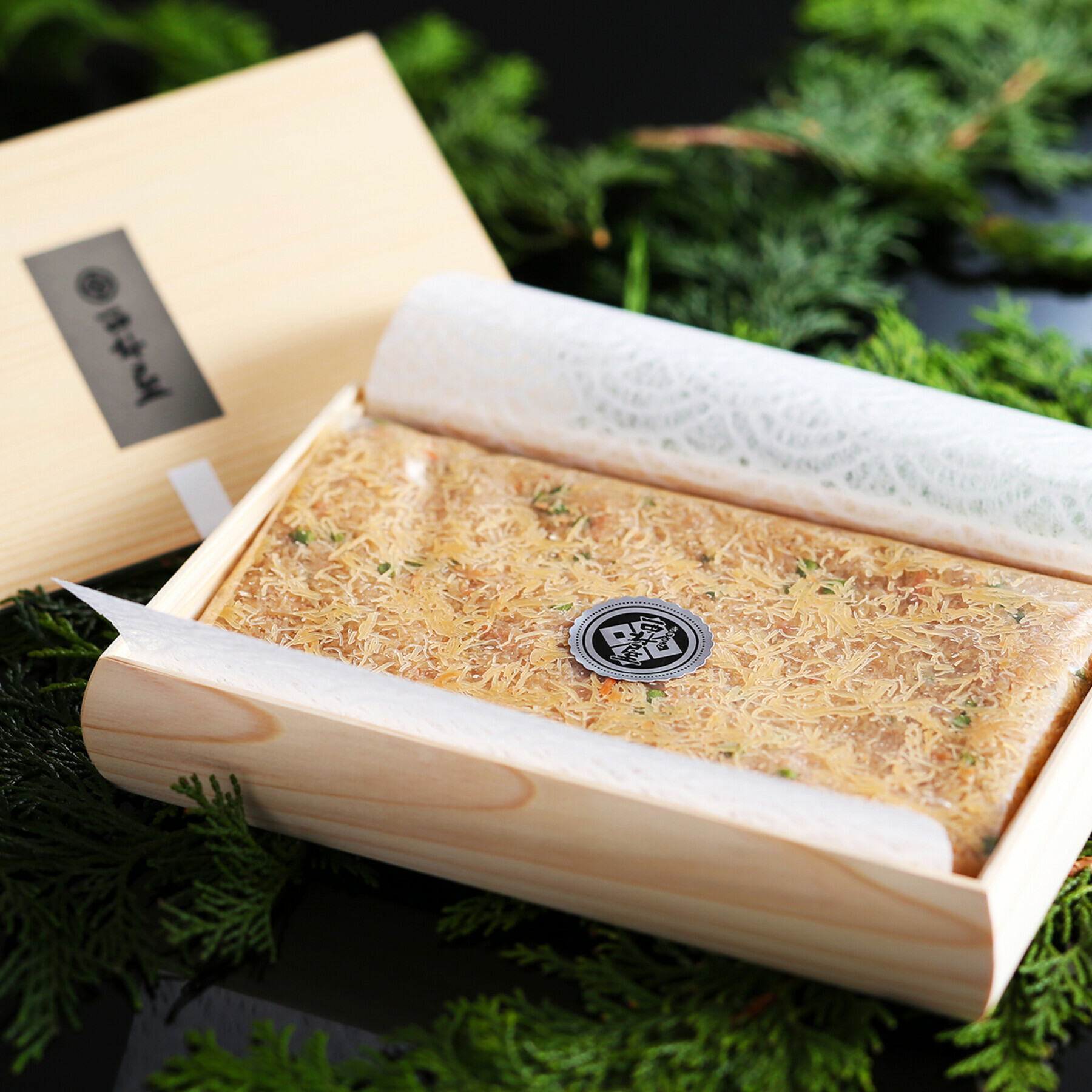 | 原材料 | 紅ずわいがに、みりん、清酒、山椒の実(朝倉山椒)、小麦醸造調味料(小麦、食塩、焼酎)、食塩 |