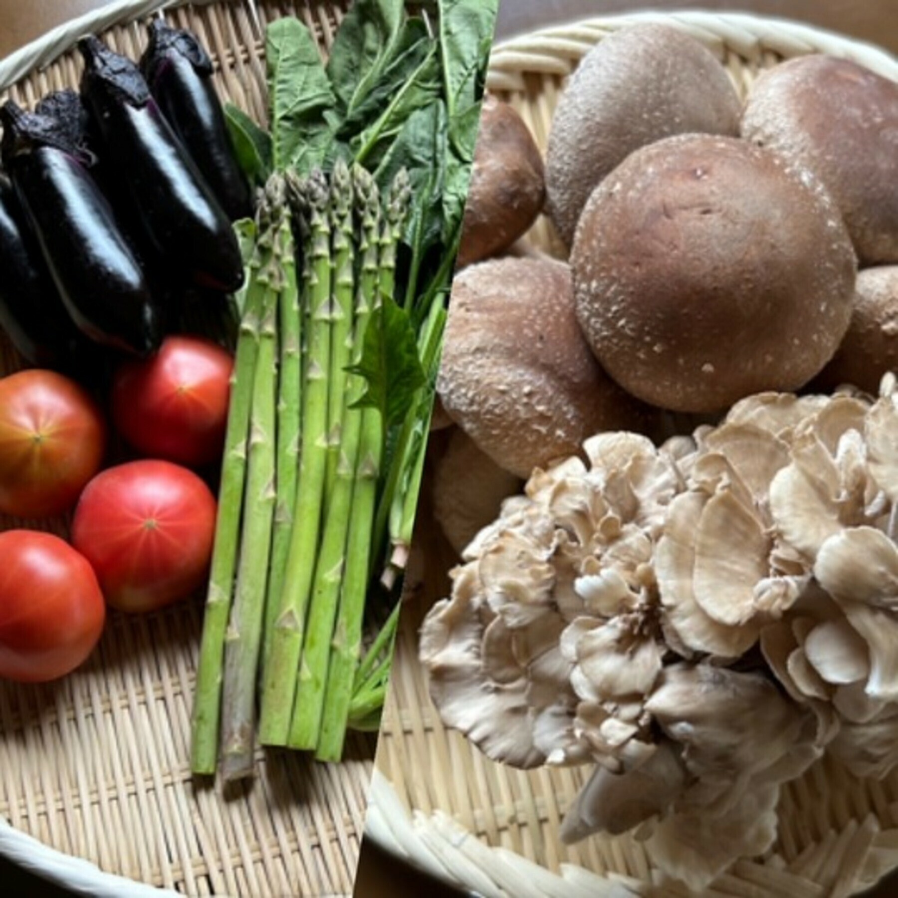 野菜・山菜・きのこ類は季節に応じて旬のものを詰め合わせます。
