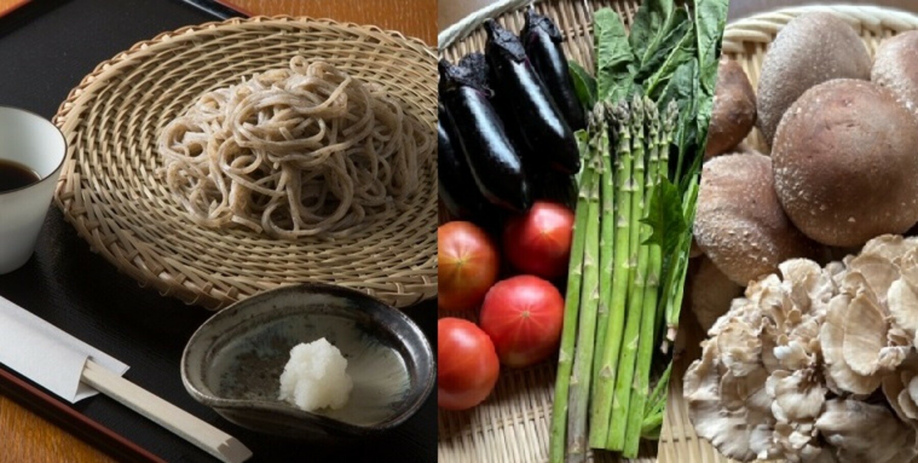 | 原材料 | めん:そば粉(国内産)、小麦粉、オヤマボクチ(つなぎ) つゆ:醤油(国内製造)、砂糖、味醂、鰹節 野菜・山菜:山菜(タケノコ・ワラビ・ふきなど)アスパラ・トマト・ブランドナス・葉物野菜など・米 ※野菜・山菜の内容に関しては、収穫時期や入荷状況により異なります。 |